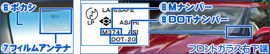 ※⑧、⑨はフロントガラス以外の部位をご依頼の際にご入力下さい。
